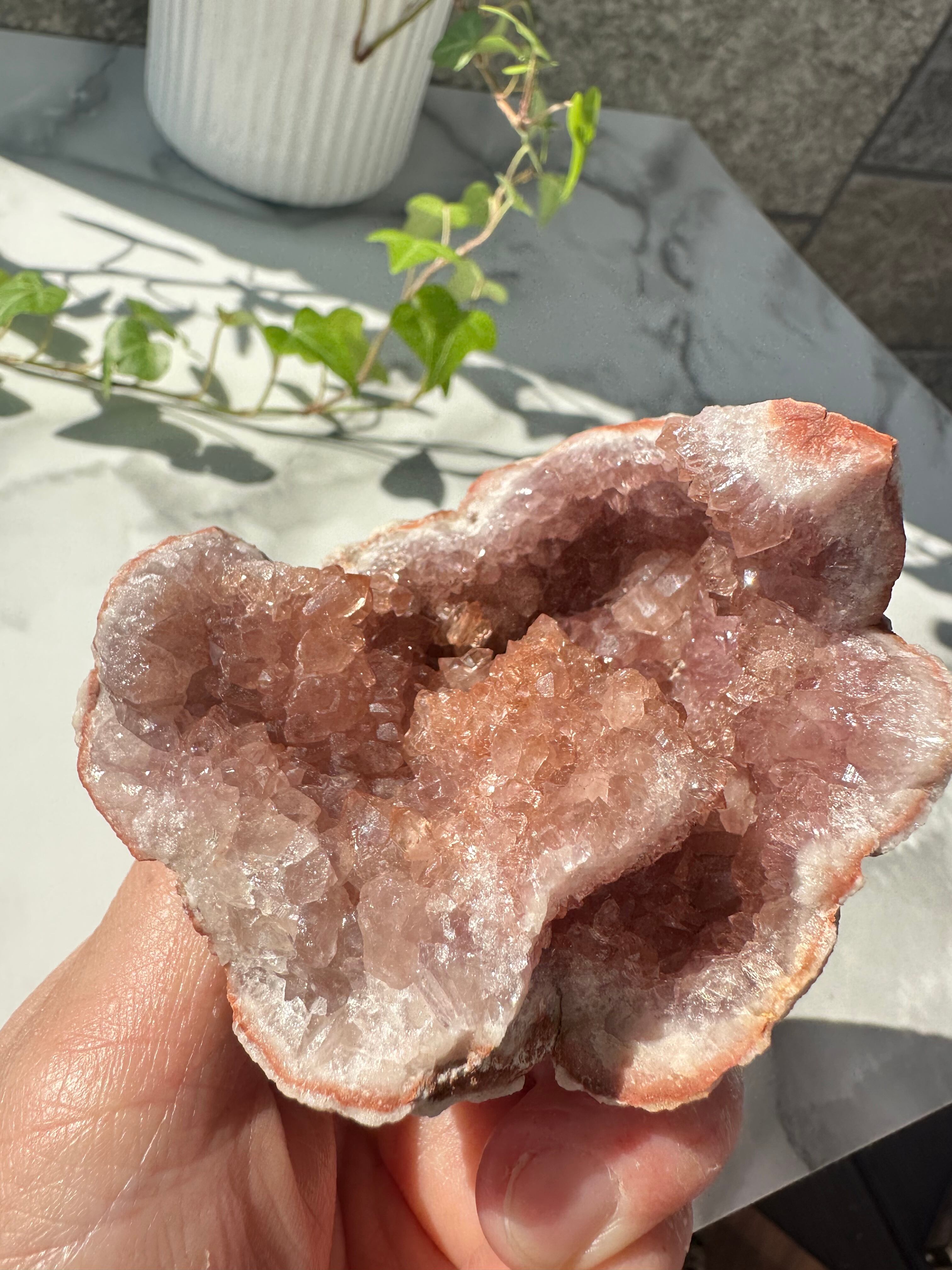 妖精が楽しそうに集まりそうな、愛溢れるピンクアメシストのジオードです